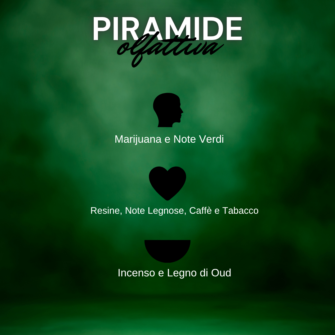 L'apertura ricca di Marijuana e note verdi ti spingono ad entrare nell'abbraccio di una foresta, seguiti da un cuore avvolgente di resine , legno e tabacco che riscalda l'animo!