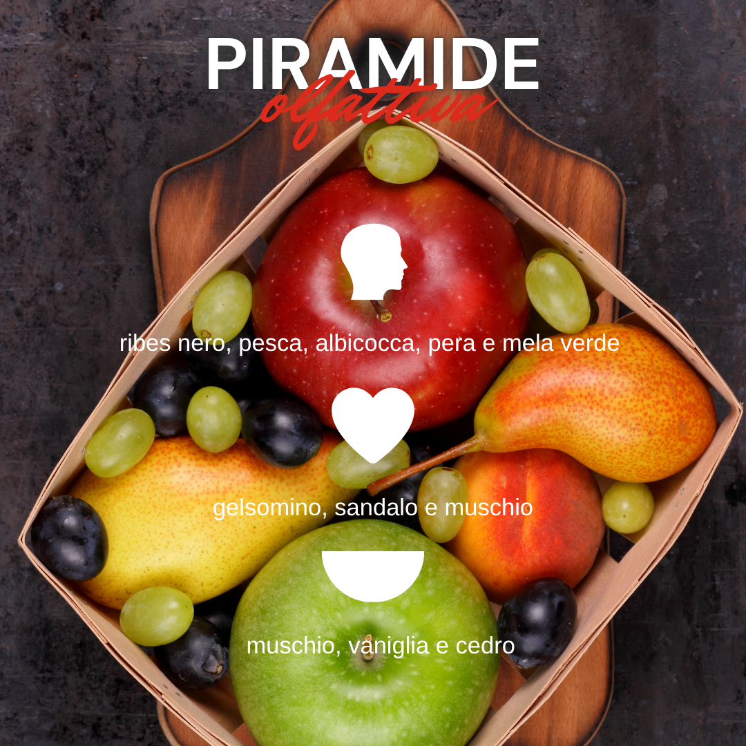 In testa note delicate e fruttate di pesca e ribes nero che si accordano con un cuore floreale di gelsomino e muschio.