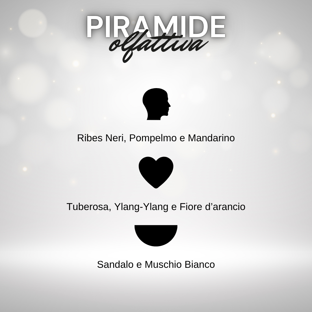 La base di muschio bianco e sandalo ti fanno sperimentare la magia di una sensazione calda ed indulgente , creando un profumo avvolgente che risveglia i sensi.