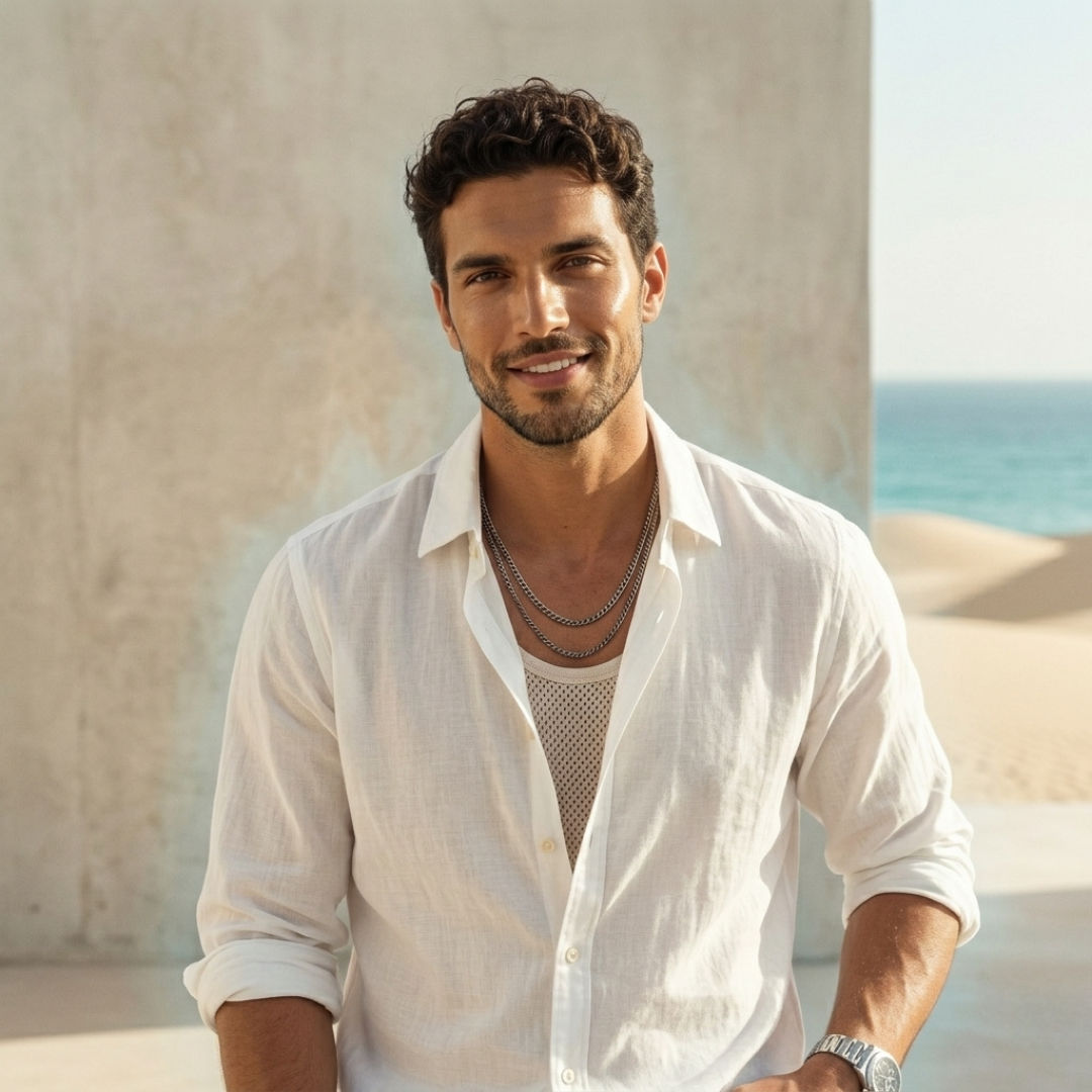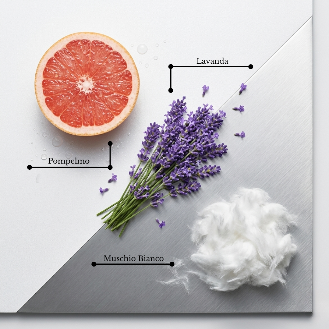 Trasmette sicurezza, vitalità e naturalezza. Le note agrumate e speziate aprono in modo brillante, poi si fondono con un cuore aromatico e acquatico che dona leggerezza e movimento. La base è morbida, legnosa, rassicurante, lascia una scia pulita e moderna. Indossarlo è sentirsi a proprio agio, lucidi, pronti.