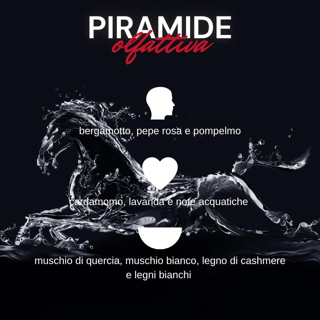 Le note di fondo di muschio e legni pregiati creano una fragranza che evoca l'essenza di uno spirito avventuroso e sensuale .