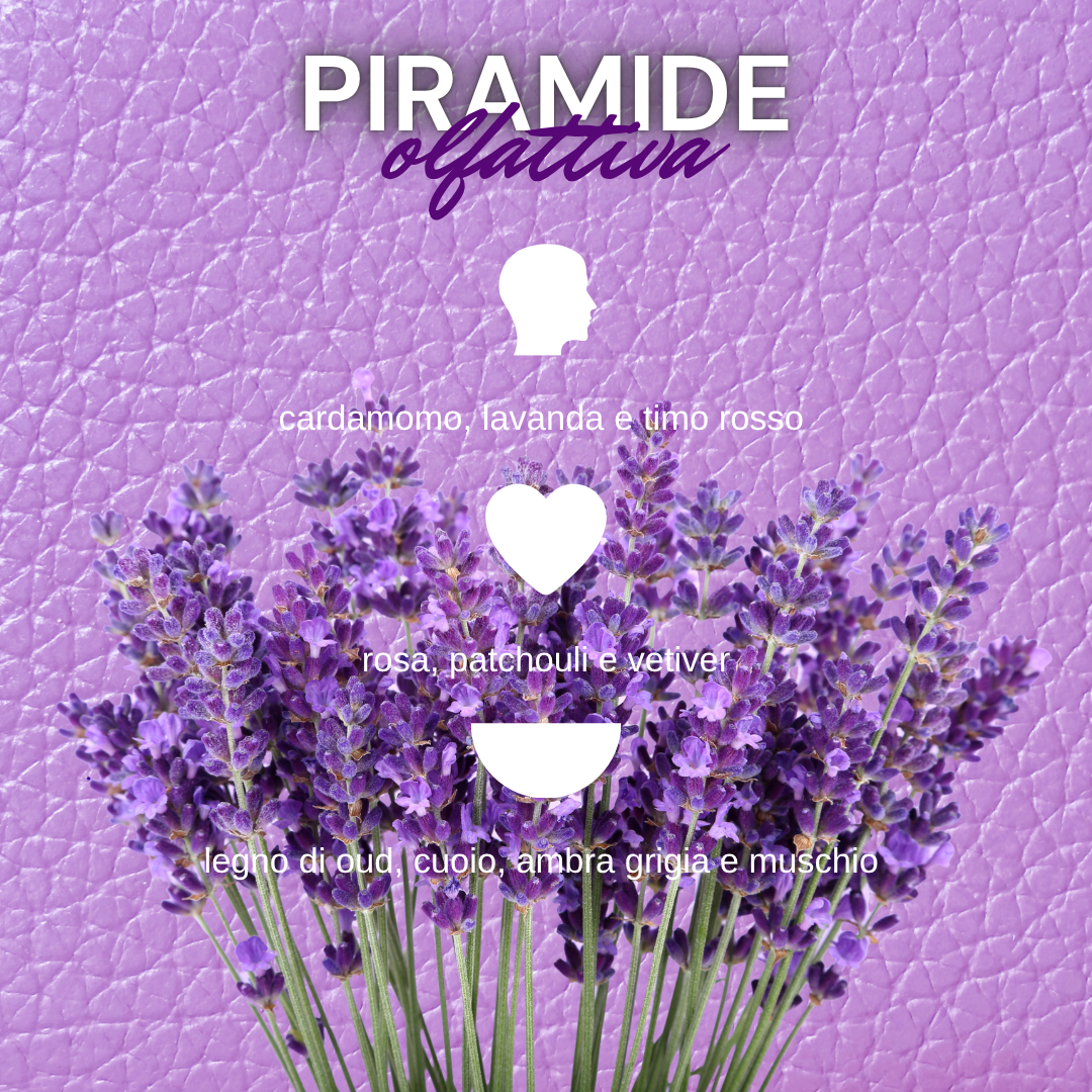 L'apertura intensa e speziata di lavanda e timo rosso unisce i confini con un cuore sensuale di rosa e patchouli.