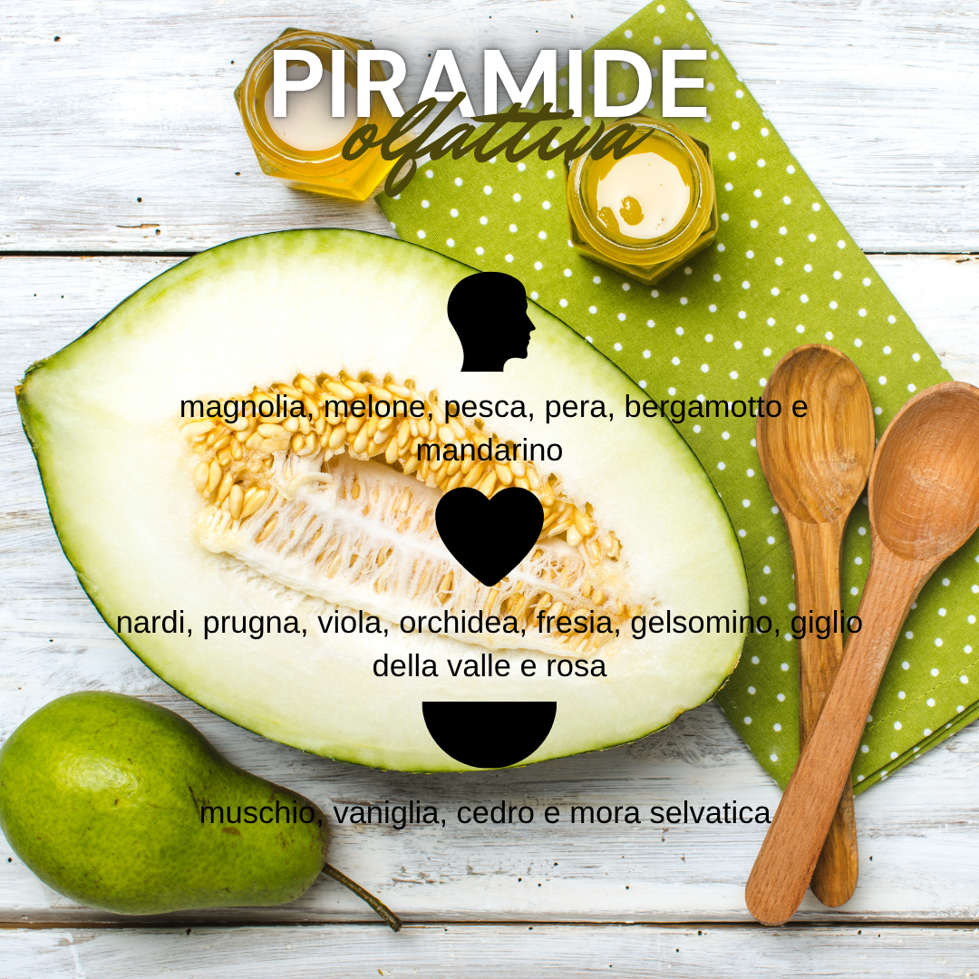 L'apertura fresca e fruttata di bergamotto e melone si incontrano con un cuore floreale di rosa e orchidea.