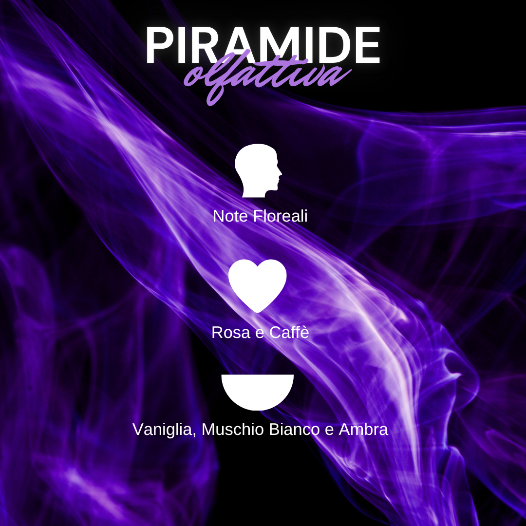 Le note di fondo di ambra , muschio bianco e vaniglia ti fanno immergere in un mondo di dolcezza e sensualità , creando una fragranza irresistibile che incanta i sensi di una donna ed un uomo determinata.